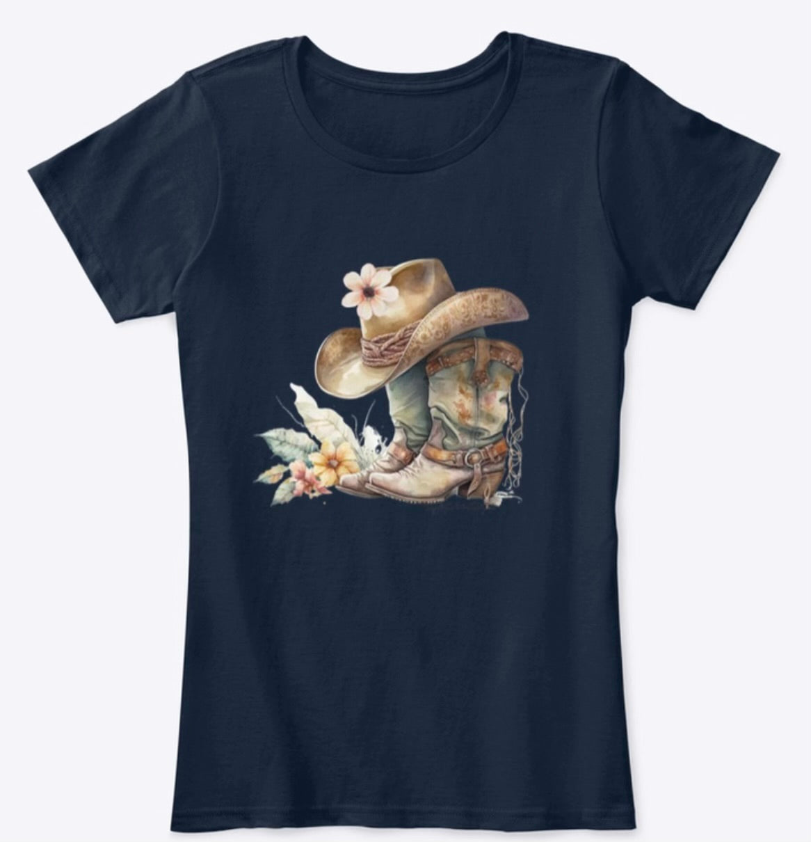 Complete your western look with our stylish and comfortable western hat and boot tshirt. Made from high-quality materials, this tshirt is perfect for any occasion. Expertly designed with attention to detail, it will be a valuable addition to your wardrobe. Upgrade your style with our hat and boots tshirt.